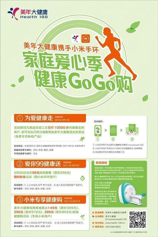 【發布時間:2015.05.05 信息來源:世紀長河】美年大健康攜手小米手環 家庭愛心季 健康GoGo購!