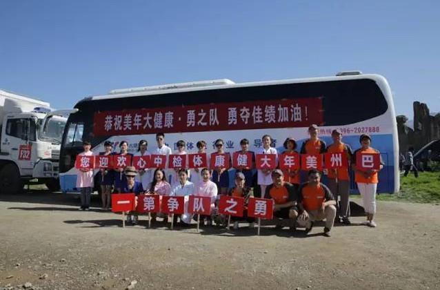 巴州美年大健康工作人員帶著移動體檢車,組成拉拉隊前來助威吶喊。