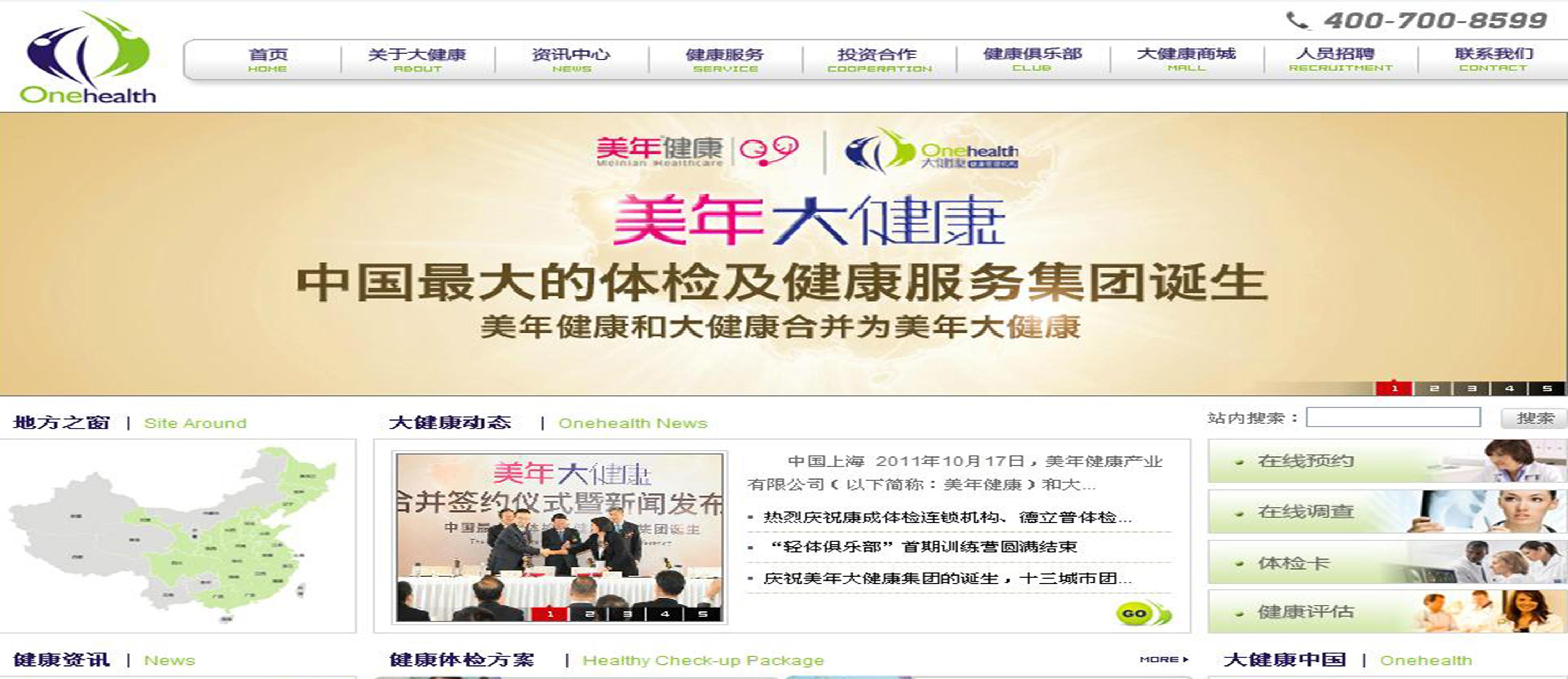 大健康科技健康管理有限公司始建于2005年,由新加坡、香港和國內(nèi)知名企業(yè)合資共同組建,是集健康體檢、健康管理、健康咨詢于一體的多元化經(jīng)營連鎖機(jī)構(gòu),總部位于沈陽,并于哈爾濱、大連、長春、吉林、延吉、鞍山、錦州、鐵嶺、四平、濟(jì)南、青島、臨沂、石家莊、太原、晉城、呂梁、鄭州、濟(jì)源、西安、寶雞、蘭州、成都、綿陽、重慶、長沙、南寧、北京等28個城市設(shè)立分支機(jī)構(gòu),共計38家體檢分院,4000余名員工,服務(wù)群體涵蓋黨政機(jī)關(guān)、知名企事業(yè)單位、保險行業(yè)、醫(yī)療機(jī)構(gòu)等5000余個團(tuán)體大客戶和數(shù)千萬消費者。