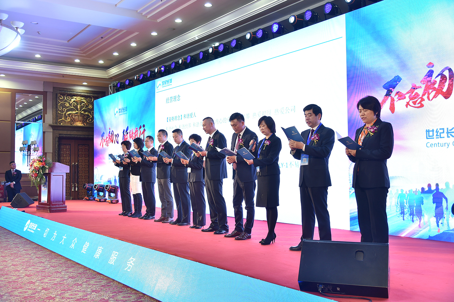 會議在與會家人齊聲誦讀《世紀(jì)長河經(jīng)營哲學(xué)》中開始——