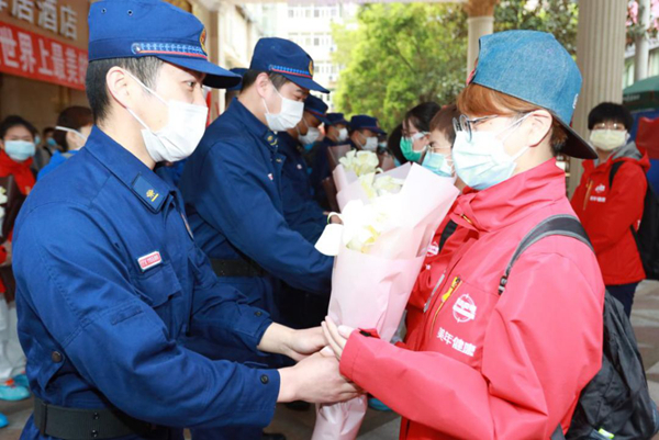 武漢市檢察院黨組書記、檢察長(zhǎng)彭勝坤在機(jī)場(chǎng)為大家送行時(shí)說(shuō):“在武漢最艱難的時(shí)候,大家響應(yīng)號(hào)召逆向而行,一個(gè)多月不畏生死、不計(jì)辛勞為抗疫斗爭(zhēng)做出積極貢獻(xiàn)。你們是天使,是英雄,我代表武漢市委市政府真心感謝大家。”?