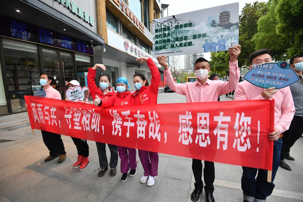 武漢市市民、志愿者向美年健康援鄂醫(yī)療隊(duì)表示最誠(chéng)摯的感謝?