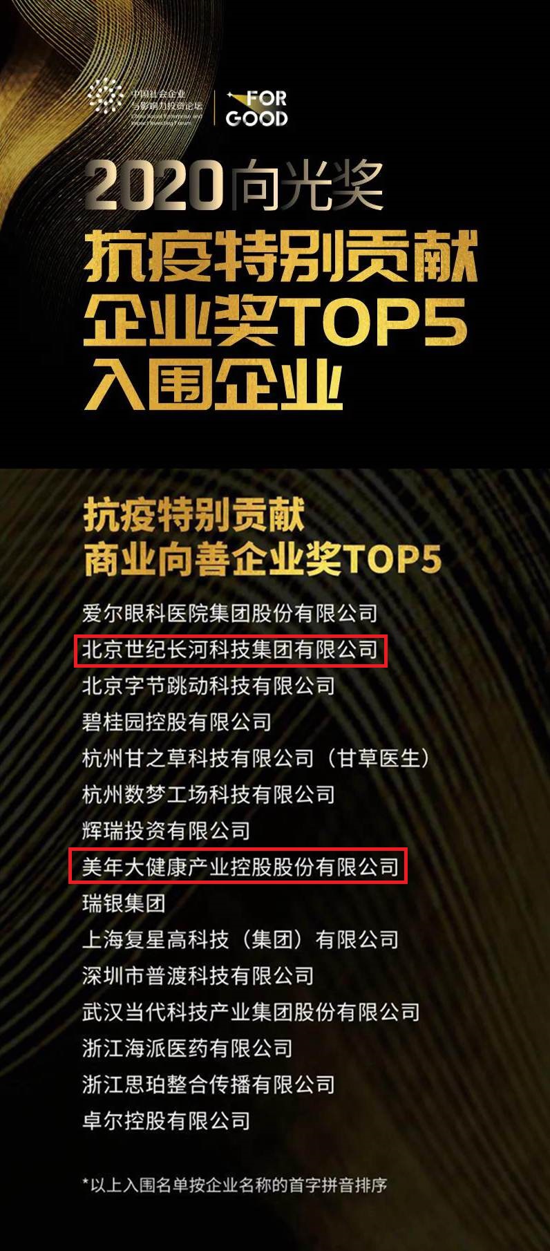 2020向光獎︱世紀長河集團入選向善企業并入圍“抗疫特別貢獻企業獎TOP5”