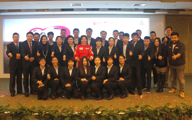 2016 Dakar Rally will start the race on January 3. “Perfect China·Meinian Onehealth·Brave Team” is ready to start. Wang Xudong, the general manager of China Grand Rally Auto Racing Management Co., Ltd, the famous racing driver Zhou Yong, the navigator of “Perfect China·Meinian Onehealth·Brave Team”, Liao Min, attended the conference and held flag presentation. Zhou Yong presented the racing driver Guo Meiling and the pilot Liao Min from “Perfect China·Meinian Onehealth·Brave Team” with the flag.